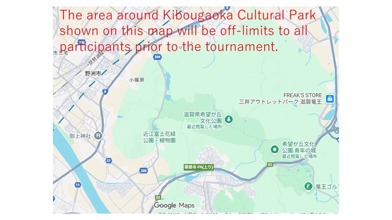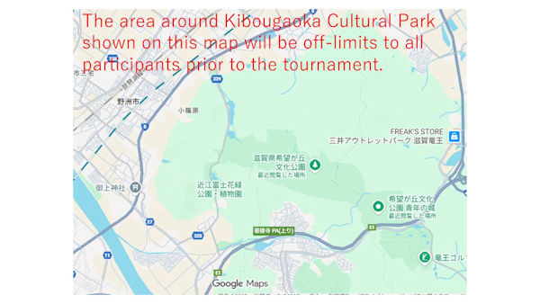 The area around Kibougaoka Cultural Park shown on this map will be off-limits to participants to the tournament.