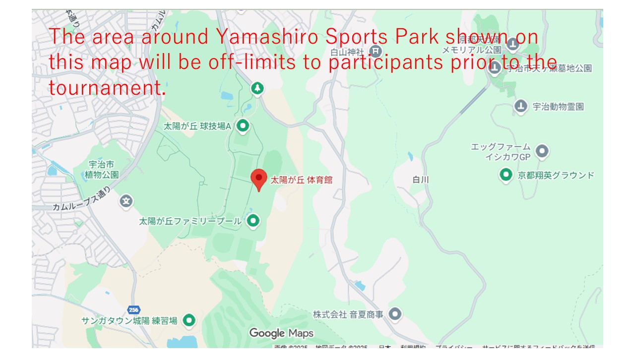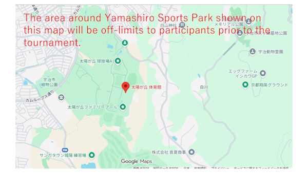The area around Yamashiro Sports Park shown on this map will be off-limits to participants to the tournament.