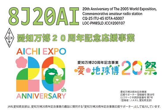 JARL愛知県支部は,愛知万博20周年記念事業の開催を記念して,応援サポーターとして次の応援事業を行います.
