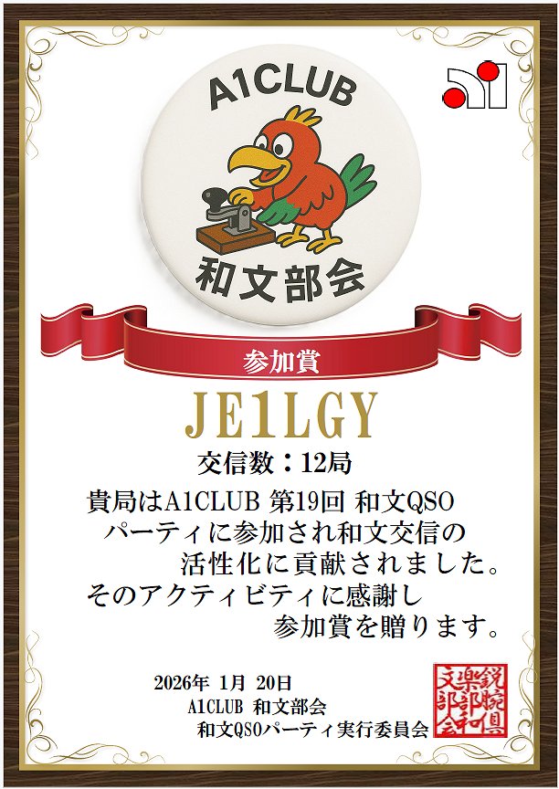 | 第19回 A1CLUB「和文QSOパーティー」に参加しました。 |
