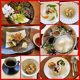 スカイビル29Fからの景色を見ながら湯葉が美味しい和食の人気店で、デザートを含め9品でゆっくり2時間の楽しいお喋り会が出来ました。