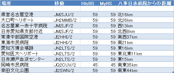【JARL愛知県支部非常通信訓練に参加】 平成9年から毎年10月末の日曜日に開催されるJARL非常通信訓練に毎年参加している。JARL支部役員であるJA2DEX柴田OM、JF2WGI水野OMらと例年計画している。当クラブは、本部局やサブ基地局を担当し、キー局運用の訓練や伝搬状況のチェック(表3)などを行っている。WIRESやD-STARなど新しいモードにチャレンジしたり、停電対策やソーラー実験などを組み合わせたりし訓練を行っている。新しい試みはJN2AES故上野氏の功績が大きい。