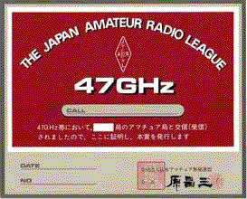 1200MHz帯〜47GHz帯の各バンドで発行されるアワードで「各アマチュアバンドで異なる10〜500局のアマチュア局と交信(SWLは受信)し,QSLカードをそれぞれのアマチュア局から各1枚得る」というものです。各バンドとも10/50/100/200/300/400/500局賞が発行されています。