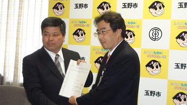 ◆協定書を取り交わす 、黒田晋・玉野市長と平野耕平・JARL岡山県支部長。