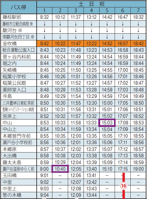 バス時刻表 上り線 下り線 令和3年3月28日改訂(抜粋)