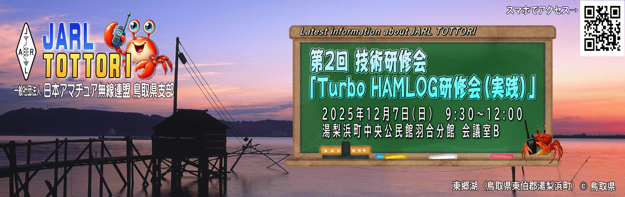 12月 7日(日) | 技術研修会 : Turbo HAMLOG研修会(実践) (湯梨浜町中央公民館羽合分館 会議室B) |